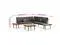 Delivery includes 3 corner sofas, 3 middle sofas, 1 footrest, 1 coffee table, 7 seat cushions and 9 back cushions. Note: We recommend covering the set in the rain, snow and frost.