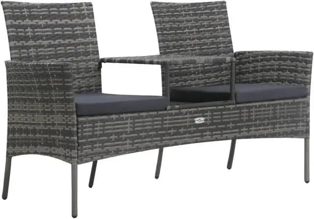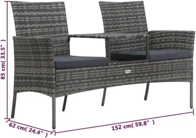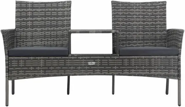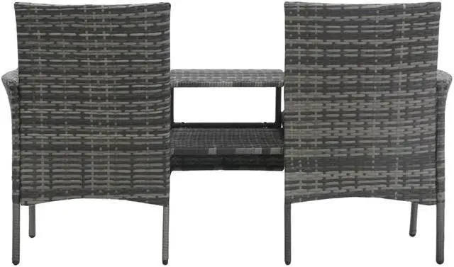 This 2-seater rattan bench combines style and functionality, and will be the focal point of your garden or patio. The rattan bench is designed to be used outdoors year round. Thanks to the weather-resistant and waterproof PE rattan, the bench set is easy to clean, hard-wearing and suitable for daily use. The bench has a sturdy powder-coated steel frame. It is also lightweight, making it easy to move around. The two seats are connected by a tea table, on which you can conveniently keep your drinks or favorite books within reach.