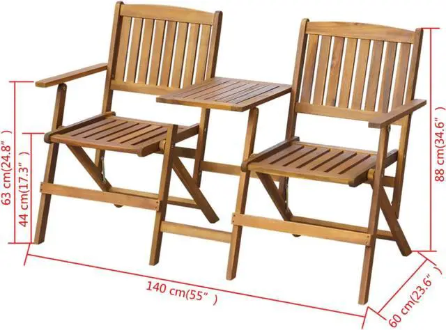 The two seats are connected by a tea table, which will come in handy for placing your drink, phone and other small items. In addition, the seat and table can be easily folded when not in use for space-saving storage. Take a load off on this lovely bench!
