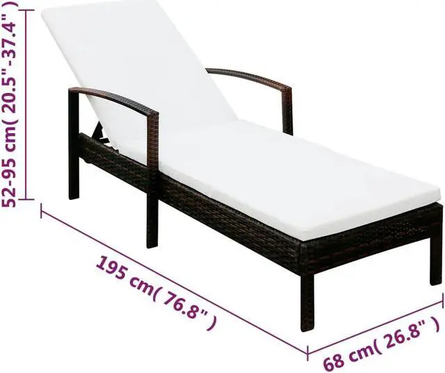 This high-quality sun lounger is ideal for spending a relaxing afternoon in the garden or at the campsite. This durable and easy-to-clean sun lounger is made of weather-resistant PE rattan. The backrest can be adjusted in 4 positions, so you can always find the most comfortable sitting or lying position, as it can be used either as a recliner or a bed. The included cushion is 2" thick and very soft. This stylish sun lounger will make a great addition to your outdoor living space! Note: We recommend covering the sun lounger in the rain, snow or frost.