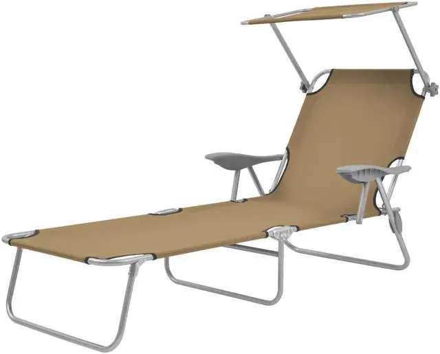 This high-quality sunlounger is equipped with an adjustable canopy so that you can enjoy a sunbath without worrying about the glare. The backrest is adjustable, allowing you to lie down as comfortably as you want. The frame is made of powder-coated steel which is weatherproof. Thanks to its folding design, this sunbed can be easily stored away when not in use. It's also light in weight for convenient transport. This sunbed is an ideal choice for relaxing and enjoying a day in the garden or on the beach!