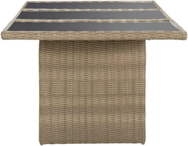 This patio dining table is specially designed for your garden or patio! The patio table is made of PE rattan, making it weather-resistant and durable. The steel frame and glass tabletop make the table sturdy and stable. Thanks to the lightweight construction, the table is also easy to move.
