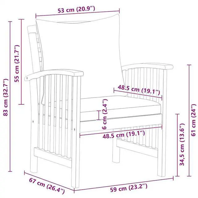 This set of 2 wooden garden chairs is specially designed to be an eye-catcher your garden, patio and terrace! The outdoor chair is made of solid acacia wood with an oil finish, making it stable and durable. The craftsmanship and the beautiful wood grains make every piece of furniture well-defined and slightly different from the next. The seat cushion and back pillow add extra seating comfort to the chair.