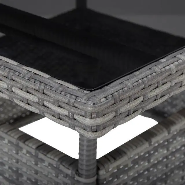 You can enjoy dinner under the stars or a sunny lunch on the patio with our dining table. It can accommodate up to 4 people. Featuring a powder-coated steel frame covered with weather resistant PE rattan with UV protection, this table ensures years of outdoor use. Made of reinforced tempered glass in strong support, the tabletop is easy to maintain and clean. Additionally, the lightweight rattan construction makes this table easy to move and replace.