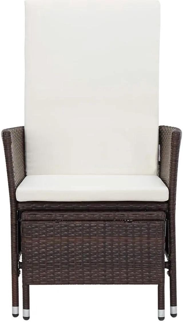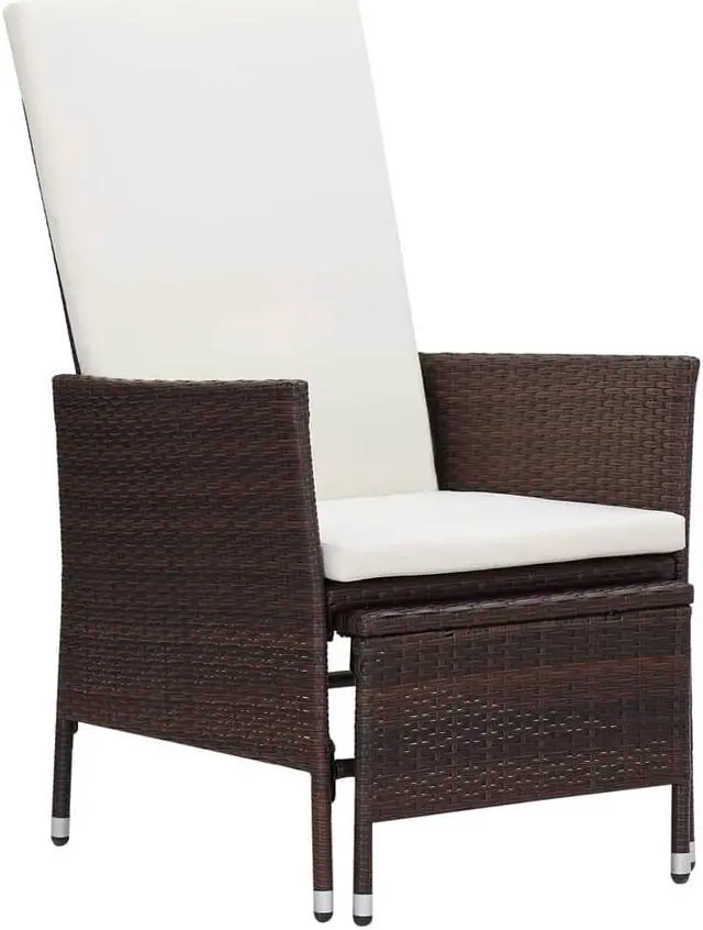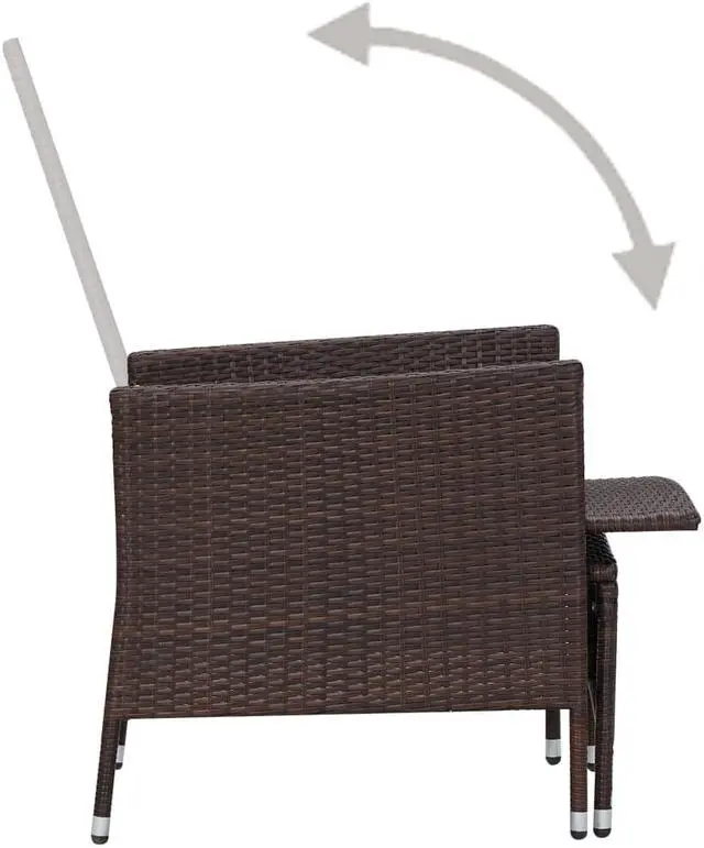 This outdoor lounge set features a powder-coated steel frame covered with PE rattan, making it sturdy and easy to clean. The thickly padded cushions add extra comfort in your lounging time. The cushion covers with zips are removable and washable. Additionally, you can relax your legs up on the footrests which can be tucked away beneath the chair when not in use. The backrest is also foldable for keeping seats clean. Thanks to lightweight PE rattan construction, you can move it easily.