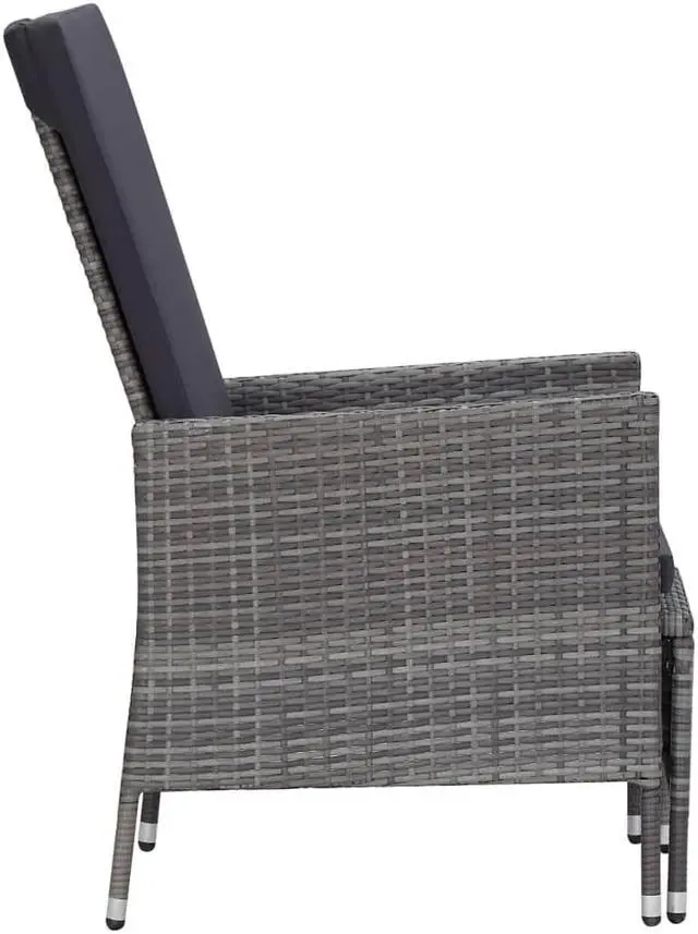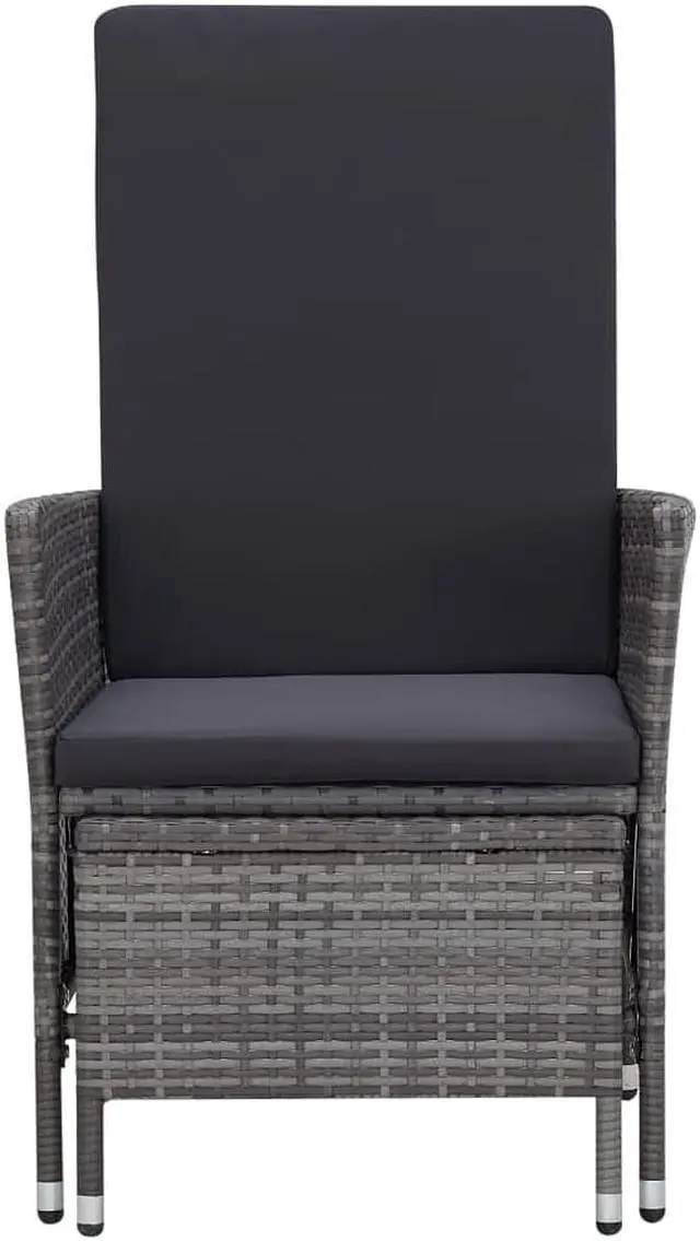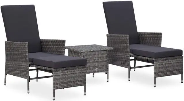 This outdoor lounge set features a powder-coated steel frame covered with PE rattan, making it sturdy and easy to clean. The thickly padded cushions add extra comfort in your lounging time. The cushion covers with zips are removable and washable. Additionally, you can relax your legs up on the footrests which can be tucked away beneath the chair when not in use. The backrest is also foldable for keeping seats clean. Thanks to lightweight PE rattan construction, you can move it easily.