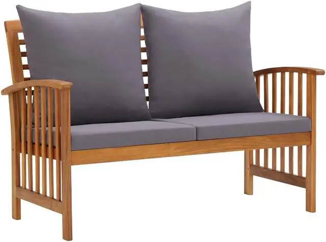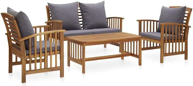 The outdoor furniture set is built from a solid acacia wood construction with an oil finish, making it stable and durable. The thick seat and back cushions make the set soft to be seated. Thanks to the solid wood tabletop with slatted design, the coffee table offers you space to put your snacks, fruit baskets, decorative items, as well as other essentials. The slightly curved backrest and the armrests add the bench's and chair's seating comfort.
