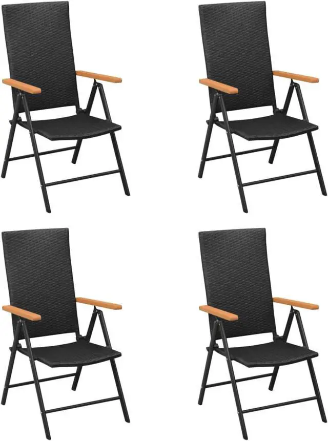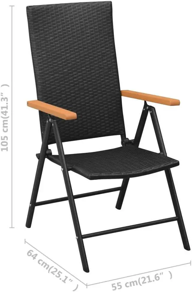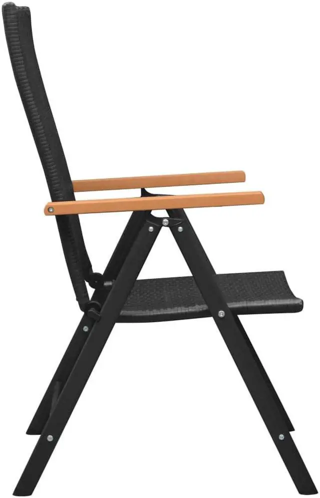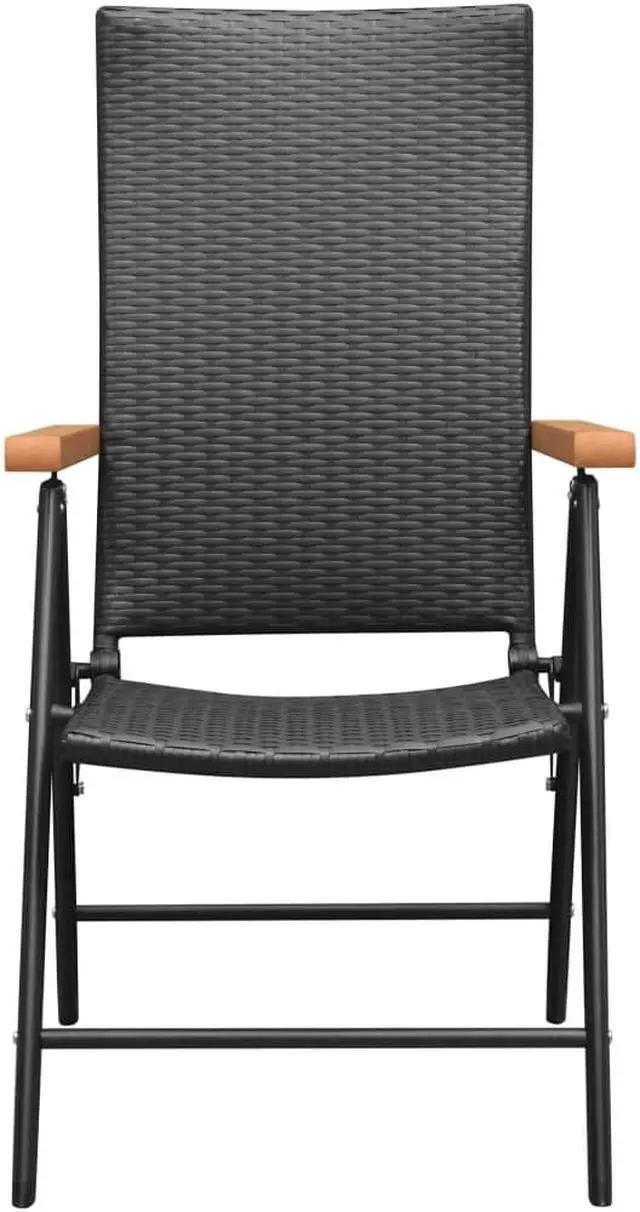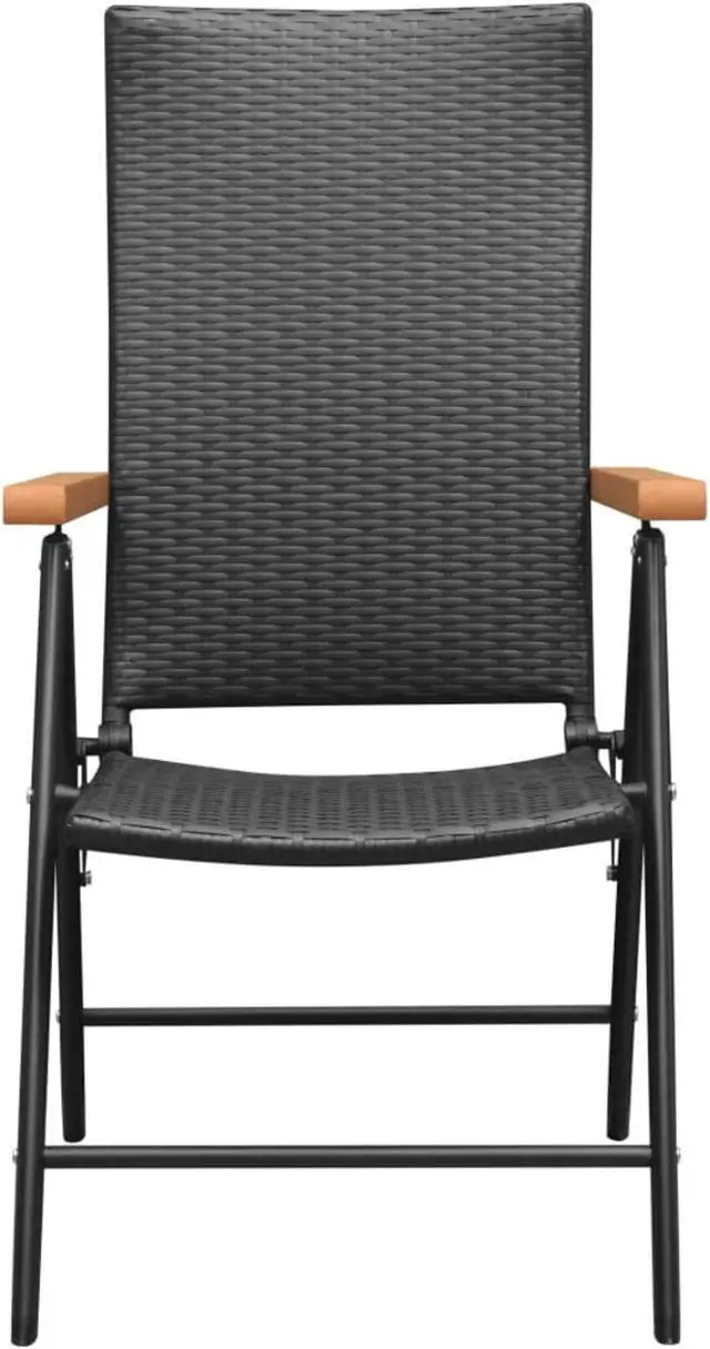 These garden chairs are perfect for use in your garden, terrace or patio. The chairs are made of PE rattan, making them durable and weather-resistant. The powder-coated aluminum frames make the chairs very sturdy. The brown WPC armrests add to the chairs' stylish look. The chairs' backrests feature 7 reclining settings, so you can always find the most comfortable seating position. Additionally, the chairs can be folded to save space when not in use.