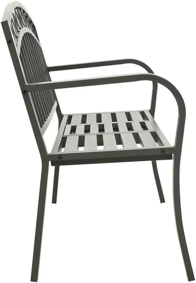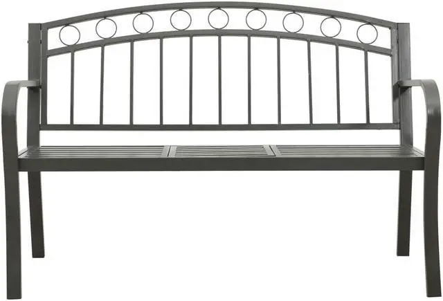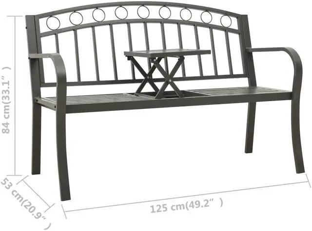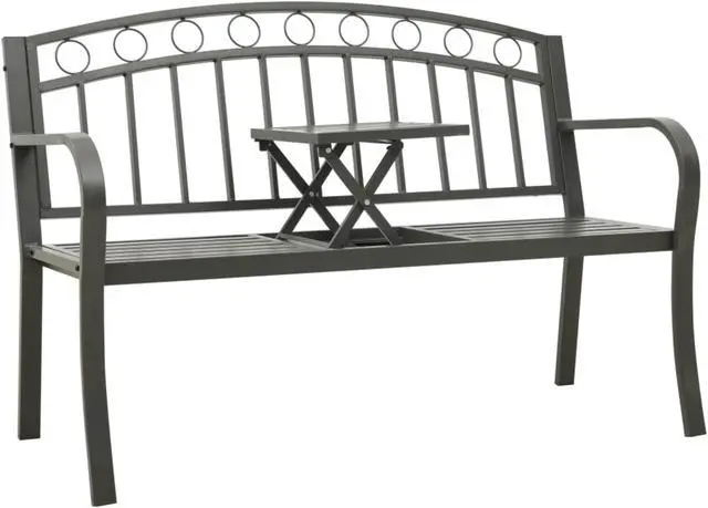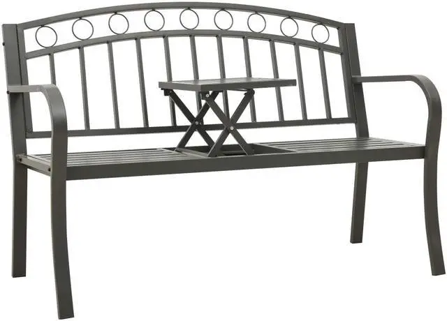 With a stylish yet practical design, this patio bench takes your outdoor living space to the next level! Made of powder-coated steel, this garden bench is weather-resistant and highly durable. Two curved metal armrests provide you with a perfect place to rest your tired arms. The table designed in the center of the bench allows you to keep the snacks and drinks within reach. Relax and enjoy your leisure time on this lovely bench!