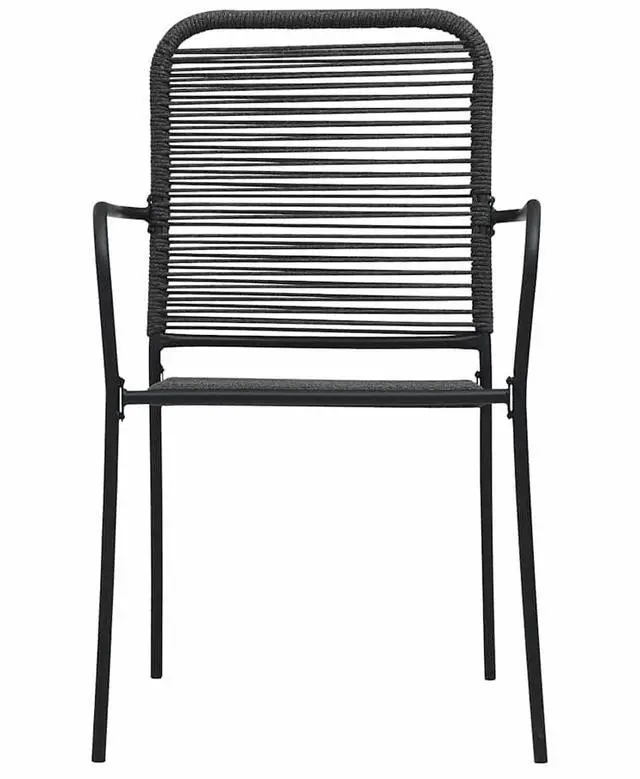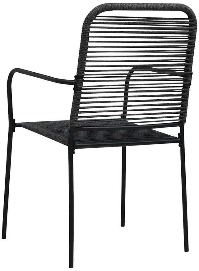 This set of 4 minimalist patio chairs offers a high level of comfort and relaxation and is designed to perfectly complement any patio areas and contemporary, modern and traditional decor. This chair set is made of cotton rope, woven over a powder-coated steel frame. It is stable and resistant to poor weather and UV rays.