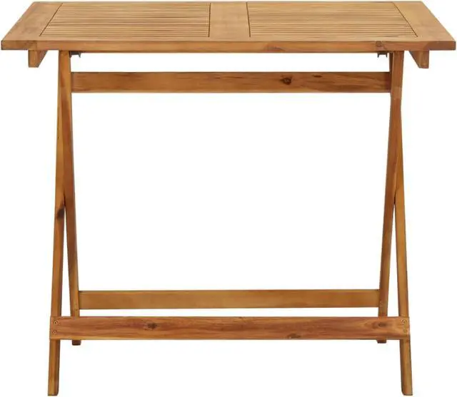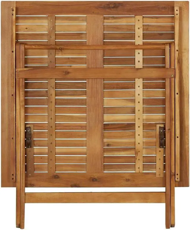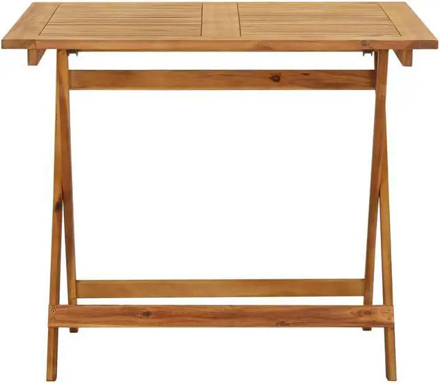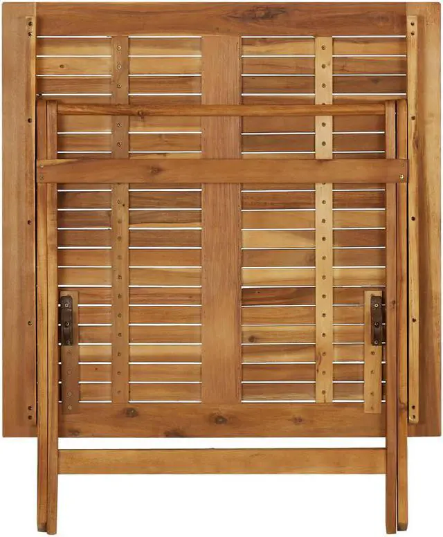 Looking for something more refined and eye-catching for your patio space? This wooden table is an optimal choice for you! This table is made of solid acacia wood with a natural oil finish, making it weather-resistant and durable. Every step of the process is carried out with the greatest care, be it polishing or lacquering. The sturdy tabletop with the slatted design is easy to wipe clean. When not in use, you can easily fold it away.