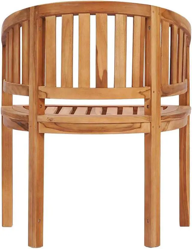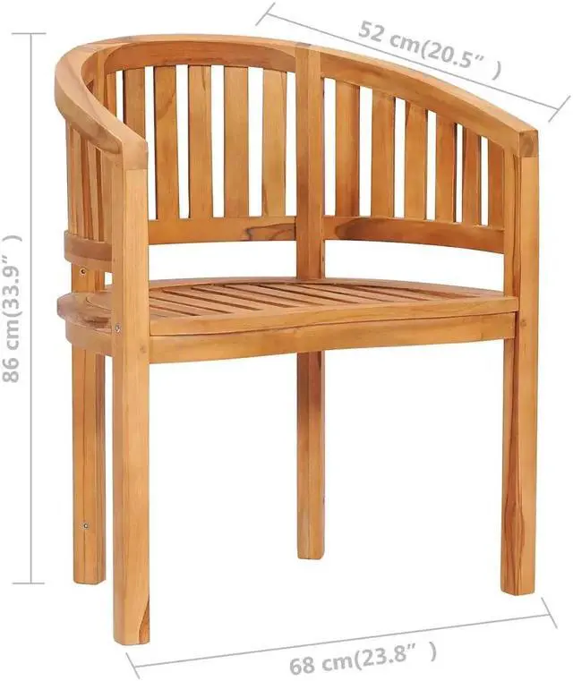 This wooden banana-shaped chair is comfortable and elegant and will look simply stunning in the garden or on the patio. Constructed from extremely durable teak hardwood, this piece of teak furniture has been seasoned, kiln-dried and then fine sanded to give a very smooth appearance. Teak wood is known for its exceptional strength and weather resistance, making it far more suitable for garden furniture than any other kind of wood. Teak wood is the perfect choice if you want to purchase a long-lasting piece of garden furniture. You can keep its natural color or add a coat of paint or other finish in your favorite color. It requires very little maintenance and care. This modern garden chair will make a stylish addition to your garden or patio; it is very suitable for relaxing or outdoor dining with your friends or family. Delivery includes 2 chairs.