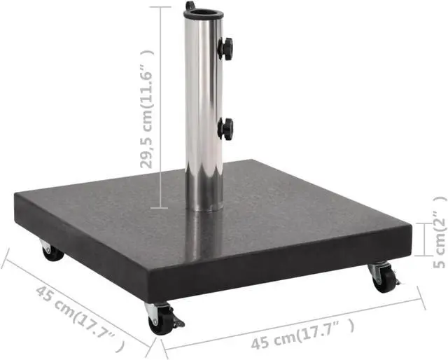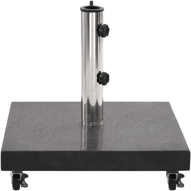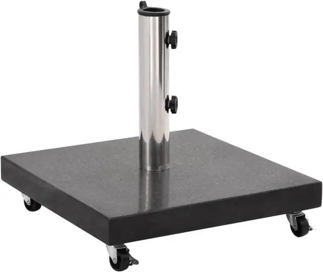 Our solid granite parasol base provides a firm and sturdy base for holding your umbrella and keeping it from tipping over or being blown away. Made of strong granite and with a weight of 30 kg, this umbrella weight plate is extremely stable and ensures your parasol stand still even in windy weather. The umbrella holder has 2 locking bolts to keep the umbrella pole in place. One adapter is included, making the parasol base holder suitable for parasol poles with diameters of 38/48 mm. Additionally, with 4 castors, the parasol base can be moved freely.