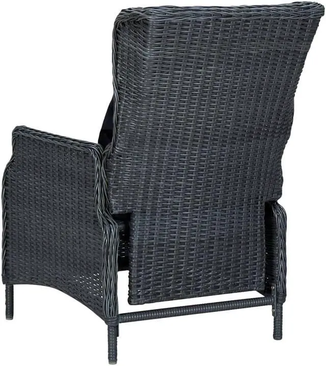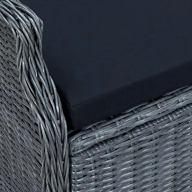 The furniture set is made of lightweight and low-maintenance round PE rattan, making it perfect for outdoor use, easy to clean with a damp cloth. Thanks to its powder-coated steel frame, the chairs and table are stable and durable. The glass tabletop adds a luxurious touch to your patio space, perfect for having dinner or placing decorative items. The thickly padded cushions add extra comfort in your lounging time. The cushion cover is equipped with a zip, removable and washable. Thanks to the gas lift mechanism, the backrest of reclining chair is also adjustable to fit your positions. By touching the button on the side, the backrest can recline, for a comfortable lying position.
