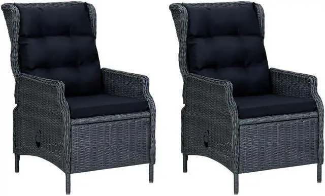 The furniture set is made of lightweight and low-maintenance round PE rattan, making it perfect for outdoor use, easy to clean with a damp cloth. Thanks to its powder-coated steel frame, the chairs and table are stable and durable. The glass tabletop adds a luxurious touch to your patio space, perfect for having dinner or placing decorative items. The thickly padded cushions add extra comfort in your lounging time. The cushion cover is equipped with a zip, removable and washable. Thanks to the gas lift mechanism, the backrest of reclining chair is also adjustable to fit your positions. By touching the button on the side, the backrest can recline, for a comfortable lying position.