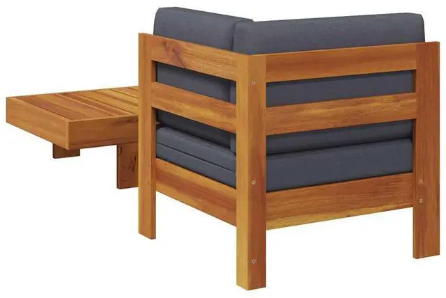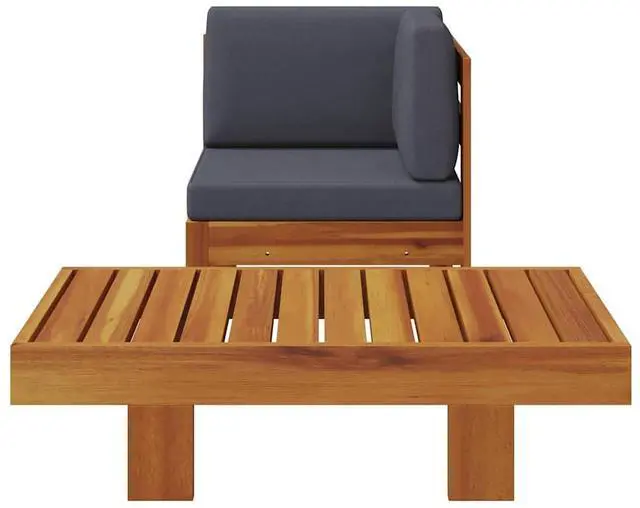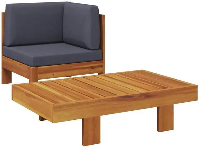 This lounge set combines style and functionality and is designed for the outdoors all year round. This patio sofa and table are made of solid acacia wood, a hardwood with dense grains. The beautifully designed furniture set is stable, durable and eye-catching. Additionally, the exquisite craftsmanship and beautiful wood grains make every piece slightly different from the next. The wooden tabletop is ideal for placing drinks and food within reach. The thickly padded cushions offer optimum comfort. You can combine it with other furniture to create your personal patio lounge set configurations!