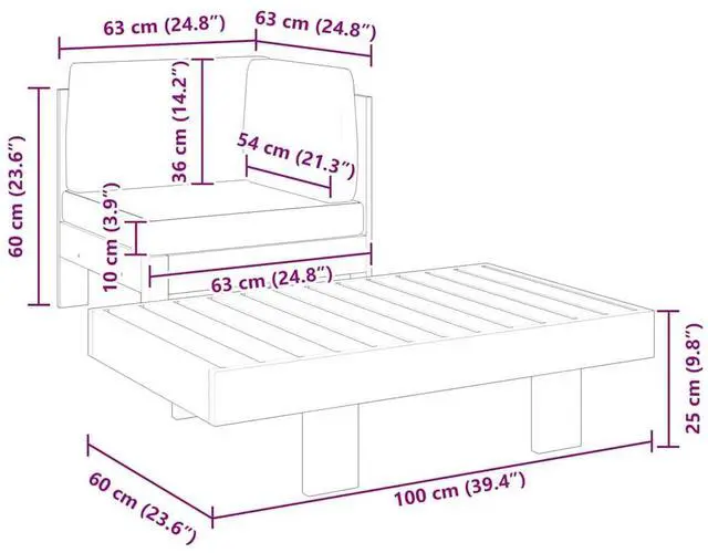 Dimensions of sofa: 24.8" x 24.8" x 23.6" (W x D x H)
