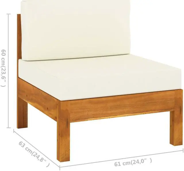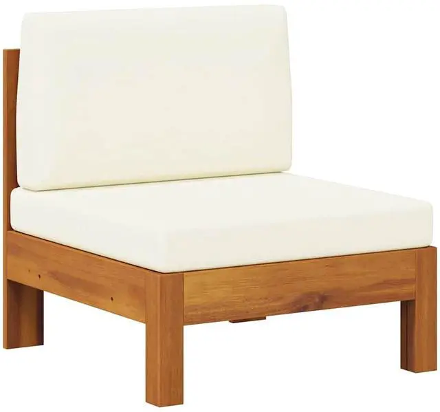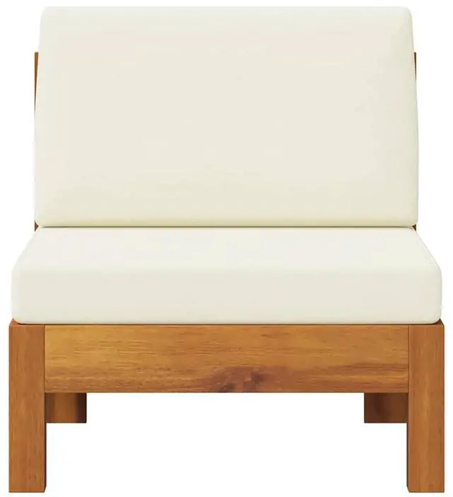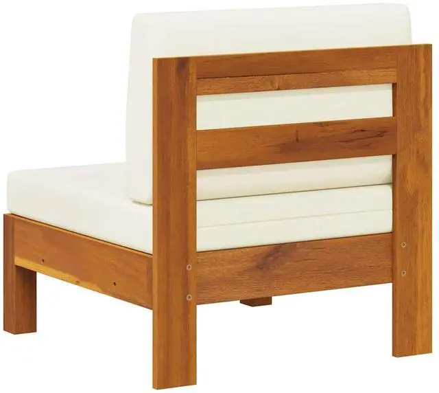 This middle sofa combines style and functionality and is designed for the outdoors all year round. The garden sofa is made of solid acacia wood, a hardwood with dense grains. The beautifully designed sofa is stable, durable and eye-catching. Additionally, the exquisite craftsmanship and beautiful wood grains make every piece slightly different from the next. The thickly padded cushions offer optimum comfort. You can combine the wooden sofa with other furniture to create your personal garden lounge set configurations!