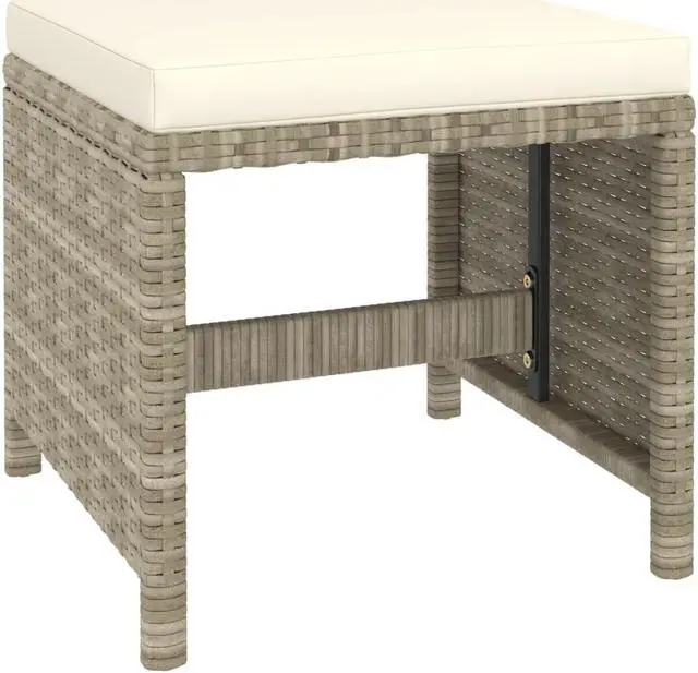 The powder-coated steel frames make the table, bench, chairs and stools strong and sturdy, and thanks to their lightweight constructions, all items are easy to move. Thanks to the weather-resistant and waterproof PE rattan, the dining set is easy to clean. The glass top is also easy to clean with a damp cloth. The thick, soft, foam-filled seat and back cushions are highly comfortable and made of water-repellent polyester. The removable and washable covers are equipped with zips.