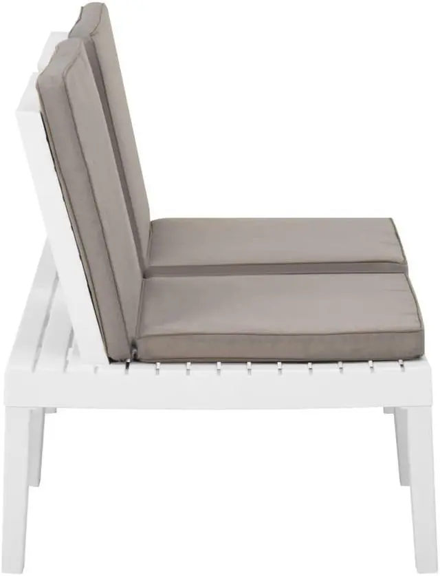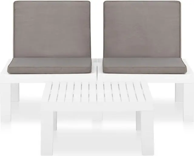 This patio lounge set is an excellent choice for relaxing and enjoying the weather, taking a nap, or chatting with your family or friends. The patio lounge set is made of plastic, making it easy-to-clean and stable. With a sturdy tabletop, the table is ideal for keeping food and drinks within reach. The backrest and the cushions add the bench's seating comfort.