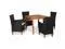 The patio table is made of solid acacia wood with an oil finish, which makes it sturdy and durable. It has a timeless design and exudes a rustic charm. Thanks to the water-resistant PE rattan, the armchairs are hard-wearing and easy to maintain. The steel frames and solid acacia wood feet make the patio chairs sturdy and stable. The dinner chairs are delivered with comfortable cushions. The low-maintenance polyester fabric cushion covers can be removed and washed if needed.