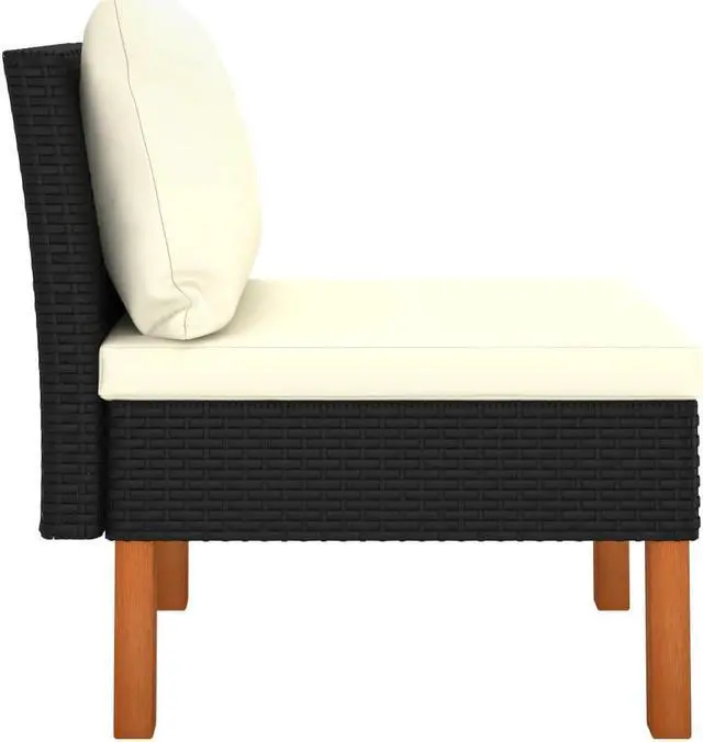 - Featuring a powder-coated steel frame covered with PE rattan, this middle seat is sturdy and easy to clean. The solid eucalyptus wood legs contribute to its sturdiness and stableness.