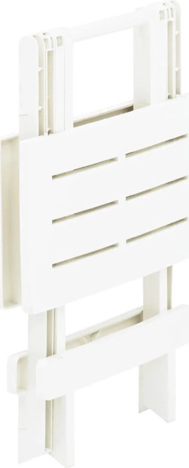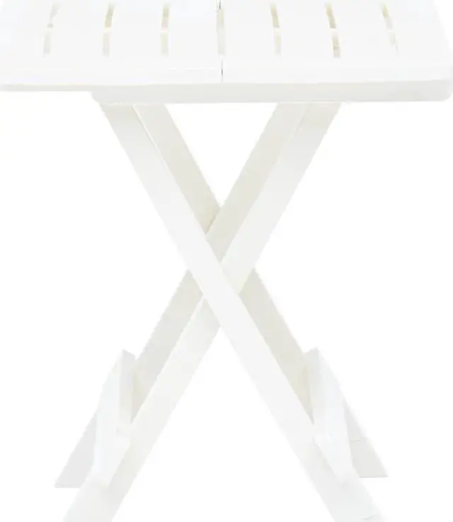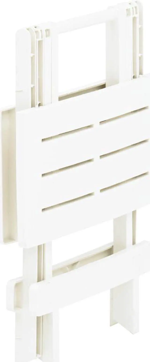 Enjoy a nice afternoon tea or meal with your friends around our patio table! This table will bring a touch of charm to your patio, deck or other patio spaces! This patio table is made of durable, weather resistant and maintenance free plastic, which is suitable for daily use. The tabletop with slatted design adds extra elegance. When not in use, the table can be folded away to save space. No assembly is required.