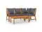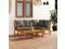 Featuring solid acacia wood frame, the sofa set is strong, sturdy and durable; and its oil finish makes the sofa set suitable for outdoor use. A coffee table, featuring unique slatted design, is also included. You can put some snacks, drinks, tea cups, book, etc, on the coffee table and keep all essentials within easy reach. This set is delivered with highly comfortable, thickly padded seat and back cushions. The low-maintenance polyester covers can also be removed and washed. In addition, standing out with its modular design, all parts can be arranged and customised as you need.