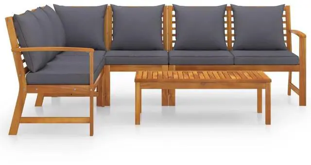 Featuring solid acacia wood frame, the sofa set is strong, sturdy and durable; and its oil finish makes the sofa set suitable for outdoor use. A coffee table, featuring unique slatted design, is also included. You can put some snacks, drinks, tea cups, book, etc, on the coffee table and keep all essentials within easy reach. This set is delivered with highly comfortable, thickly padded seat and back cushions. The low-maintenance polyester covers can also be removed and washed. In addition, standing out with its modular design, all parts can be arranged and customised as you need.