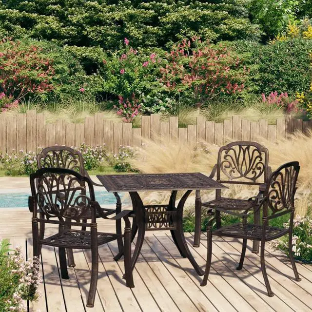 vidaXL Bistro Set Table and Chair Bistro Table 5 Piece Cast Aluminum Bronze