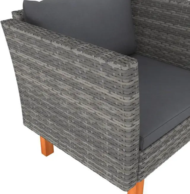 Material: PE rattan, powder-coated steel, solid eucalyptus wood with an oil finish