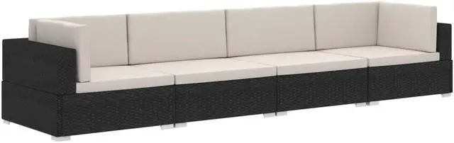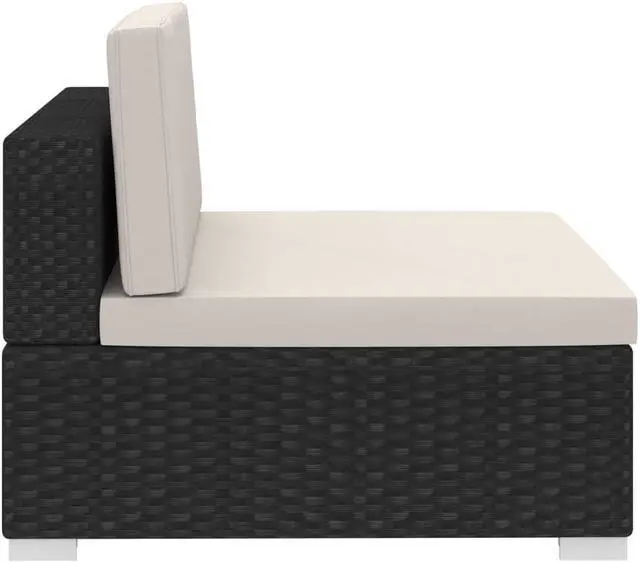 This poly rattan sofa set, consisting of 2 corner sofas, 2 center sofa, 6 back cushions and 4 seat cushions, will offer a stylish seating area for your garden or patio.