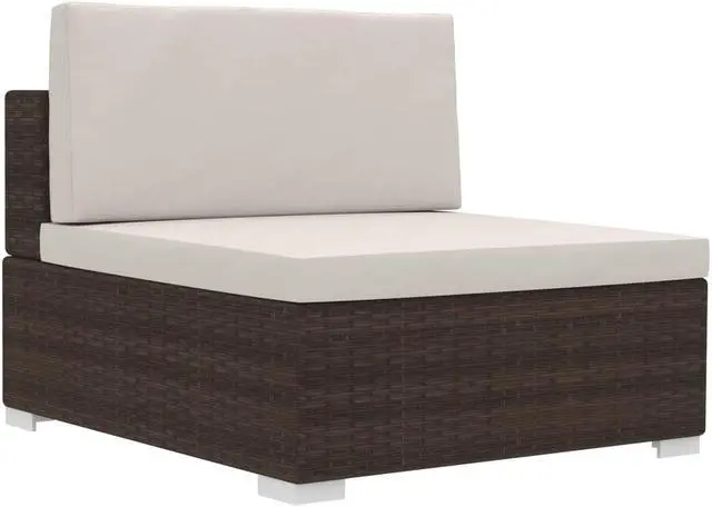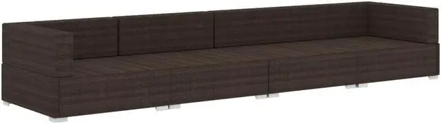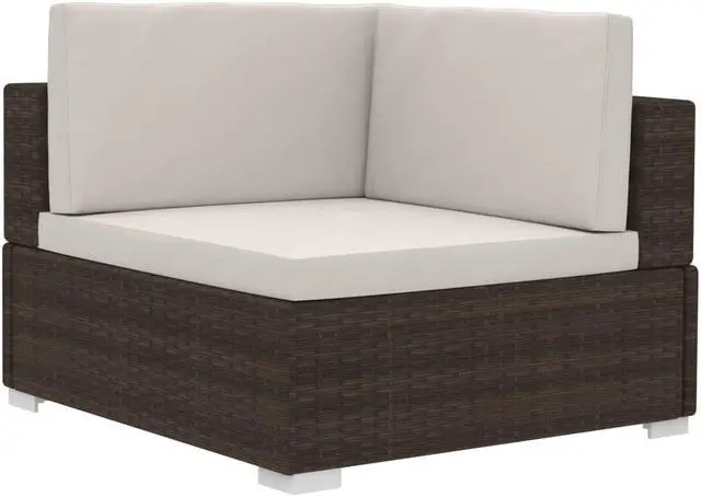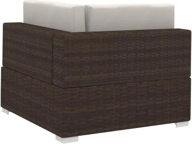 This poly rattan sofa set, consisting of 2 corner sofas, 2 center sofa, 6 back cushions and 4 seat cushions, will offer a stylish seating area for your garden or patio.
