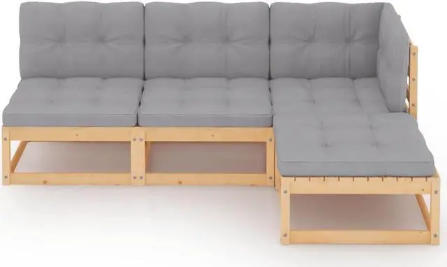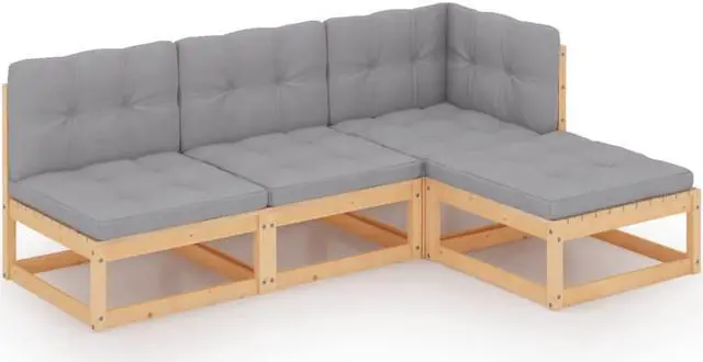 vidaXL Patio Furniture Set 4 Piece Sectional Sofa with Cushions Solid Wood Pine