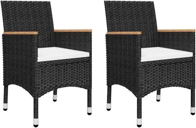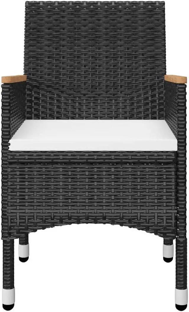 Featuring a powder-coated steel frame covered with weather-resistant PE rattan with UV protection, the table, and chairs ensure years of outdoor use. Chairs are designed in a more ergonomic shape for maximum comfort. Cushions are included for added support. The tabletop and armrests are made of solid acacia wood with an oil finish, which is weather-resistant and durable. The craftsmanship and beautiful wood grains make every piece of furniture slightly different from the next.