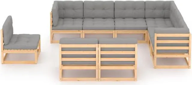 vidaXL Patio Lounge Set Outdoor Sectional Sofa Set 9 Piece Solid Wood Pine