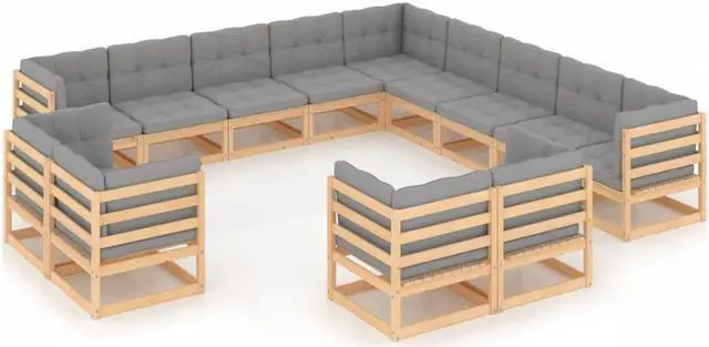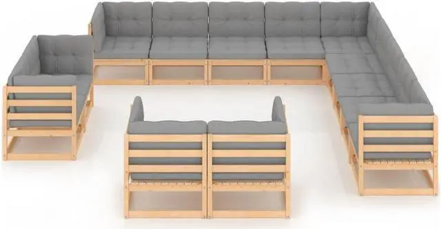 vidaXL Patio Lounge Set Outdoor Sectional Sofa Set 13 Piece Solid Wood Pine