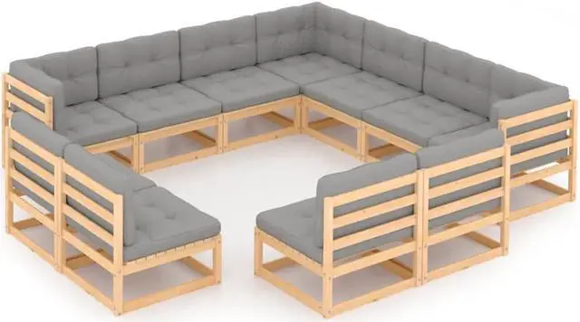 vidaXL Patio Furniture Set 11 Piece Sofa Set with Cushions Solid Wood Pine