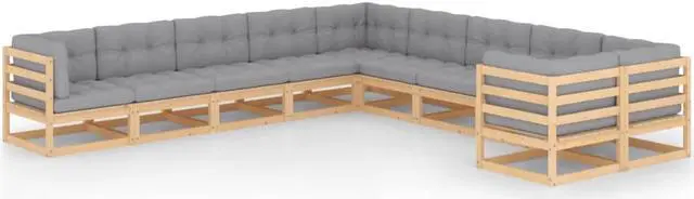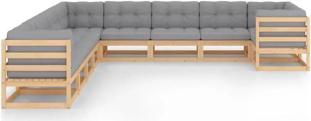 vidaXL Patio Lounge Set Outdoor Sectional Sofa Set 10 Piece Solid Wood Pine