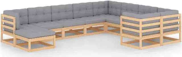 vidaXL Patio Furniture Set 10 Piece Sofa Set with Cushions Solid Wood Pine