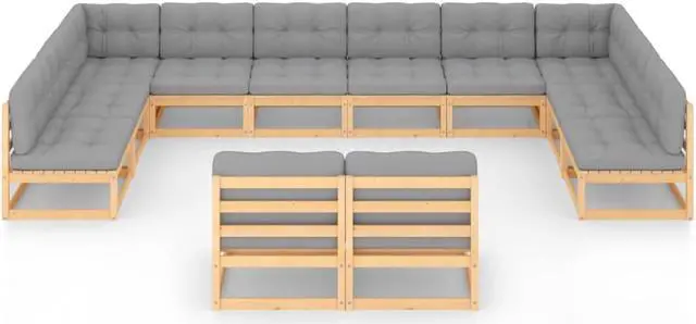 vidaXL Patio Lounge Set Outdoor Sectional Sofa Set 12 Piece Solid Wood Pine