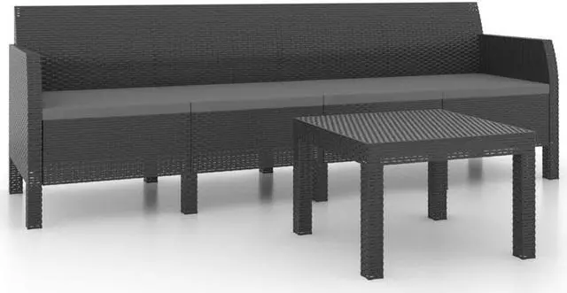 This 4-seater garden lounge set creates a cozy and stylish space for relaxation and hanging out. It has a modern, rectangular design with a sturdy frame made from synthetic polypropylene, resembling rattan, all in a classy anthracite grey that fits in nicely with any indoor or outdoor setting.