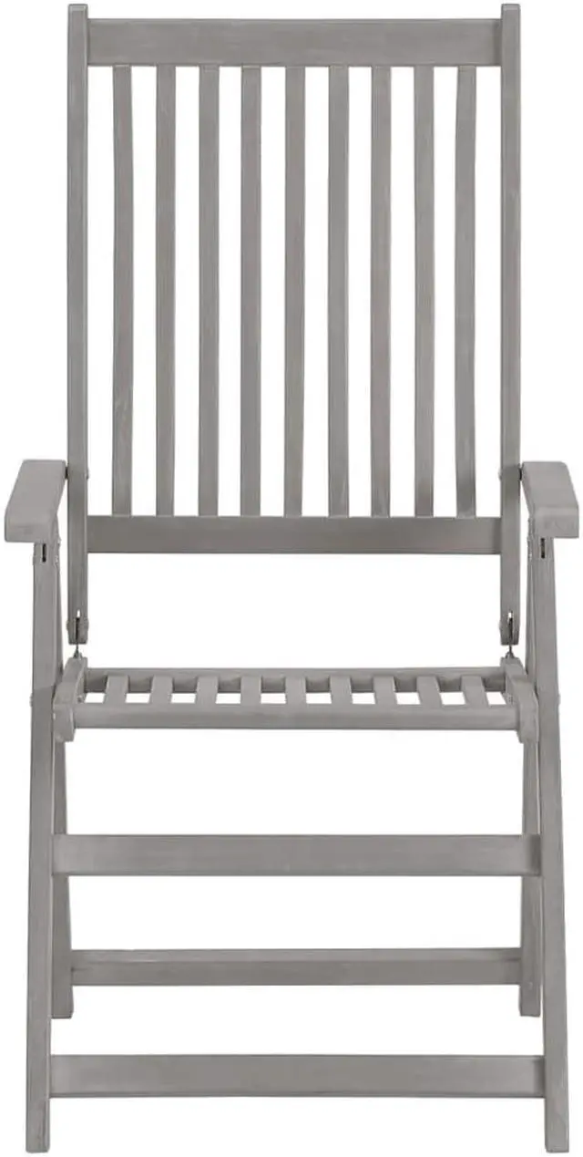 These armchairs are made of solid acacia wood with a gray wash finish, a hardwood with dense grains. These beautifully-designed outdoor chairs are stable, durable and eye-catching. The chair's backrest can be adjusted in 5 reclining settings, so you can always set the most comfortable position as per your preference. What's more, the included cushions provide extra comfort while lounging or dining. Each cushion has an elastic band and two sets of ropes to fix it on the chair tightly. These chairs are perfect for dining with your family, or just enjoying the weather in your garden.