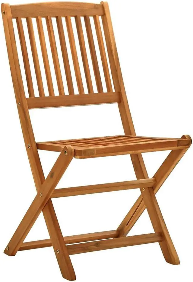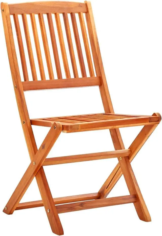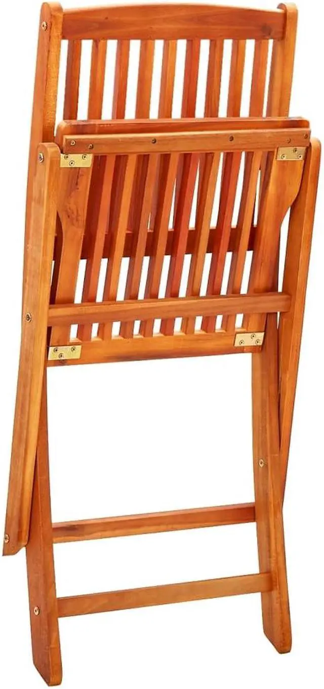 This contemporary wooden dining chair set will add a touch of natural style to your garden, terrace or patio. This folding chair set will be a great choice for dining. The dining chair is made of eucalyptus wood which is weather-resistant and durable for years of use. The oil finished surface is easy to clean with a damp cloth. The chairs can be folded to save space when not in use.