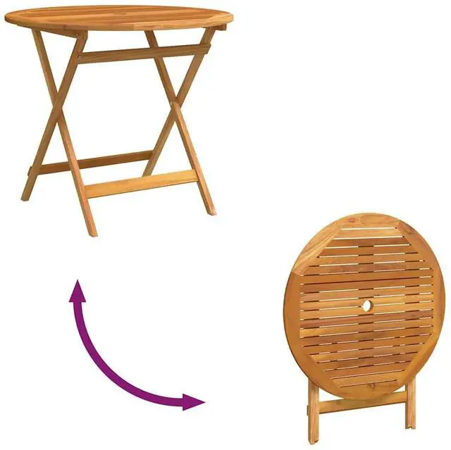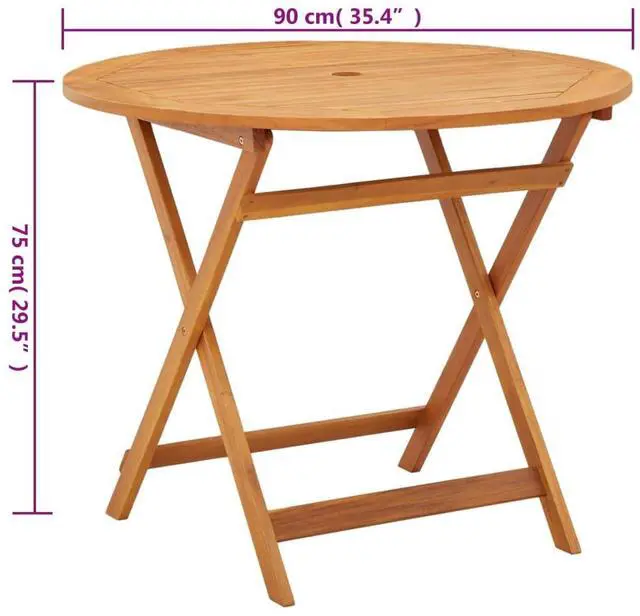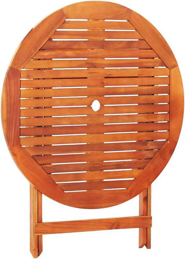 This wooden dining table adds an elegant touch to the dinner for parties, picnics and any outdoor activities. The dining table is made of solid eucalyptus wood, which is weather-resistant and durable. The oil-finishing keeps a smooth appearance, making it easy to clean with a damp cloth. The table can be folded away to save space when not in use. It also features an umbrella hole.