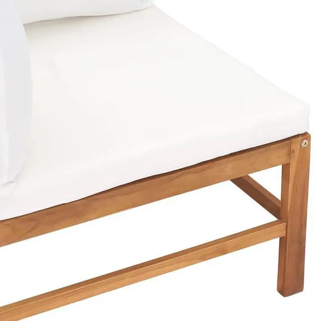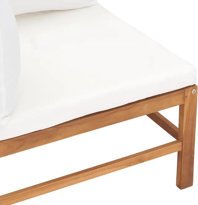 Constructed from extremely durable teak hard wood, this piece of teak furniture has been seasoned, kiln dried and then fine sanded to give a very smooth appearance. Teak wood is known for its exceptional strength and weather resistance, making it far more suitable for garden furniture than any other kind of wood. Teak wood is the perfect choice if you want to purchase a long lasting piece of garden furniture. The thickly padded seat and back cushions add to utmost comfort. The sanded surface is easy to clean with a damp cloth. The wooden bench is flexible and easy to move around, which makes it easy for you to create different layouts and fit your needs.