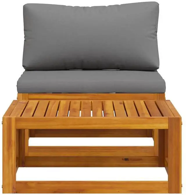 This wooden patio sofa set combines style and functionality, and is designed to be used outdoors year-round. Made of solid acacia wood, the sofa set is strong, sturdy and durable. Its oil finish makes the set suitable for outdoor use. The padded seat and back cushions provide the ultimate comfort during your seating experience. The sturdy tabletop can be used to place drinks or snacks. You can combine it with other modular segments available to create your own personal patio lounge set configurations!