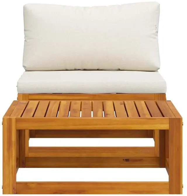This wooden patio sofa set combines style and functionality, and is designed to be used outdoors year-round. Made of solid acacia wood, the sofa set is strong, sturdy and durable. Its oil finish makes the set suitable for outdoor use. The padded seat and back cushions provide the ultimate comfort during your seating experience. The sturdy tabletop can be used to place drinks or snacks. You can combine it with other modular segments available to create your own personal patio lounge set configurations!