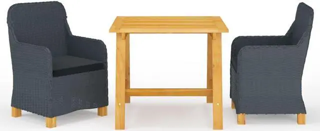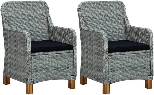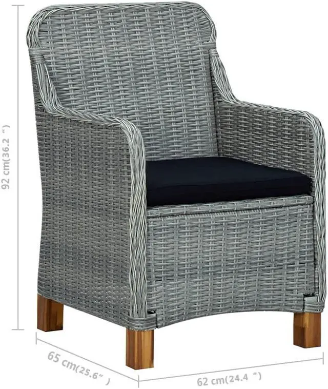 The dinner table is made of solid acacia wood with an oil finish, which makes it stable, durable and easy to maintain. The outdoor chair, featuring a powder-coated steel frame covered with round PE rattan, is sturdy and easy to clean. The thickly padded cushions add extra comfort in your lounging time. The cushion cover is equipped with a zip, removable and washable. Additionally, the solid acacia wood legs add to its sturdiness and stableness. These patio chairs are easy to move with its lightweight construction.