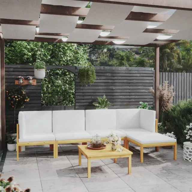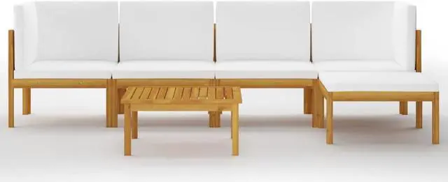 vidaXL Patio Lounge Set 6 Piece Sofa with Cushions Cream Solid Acacia Wood